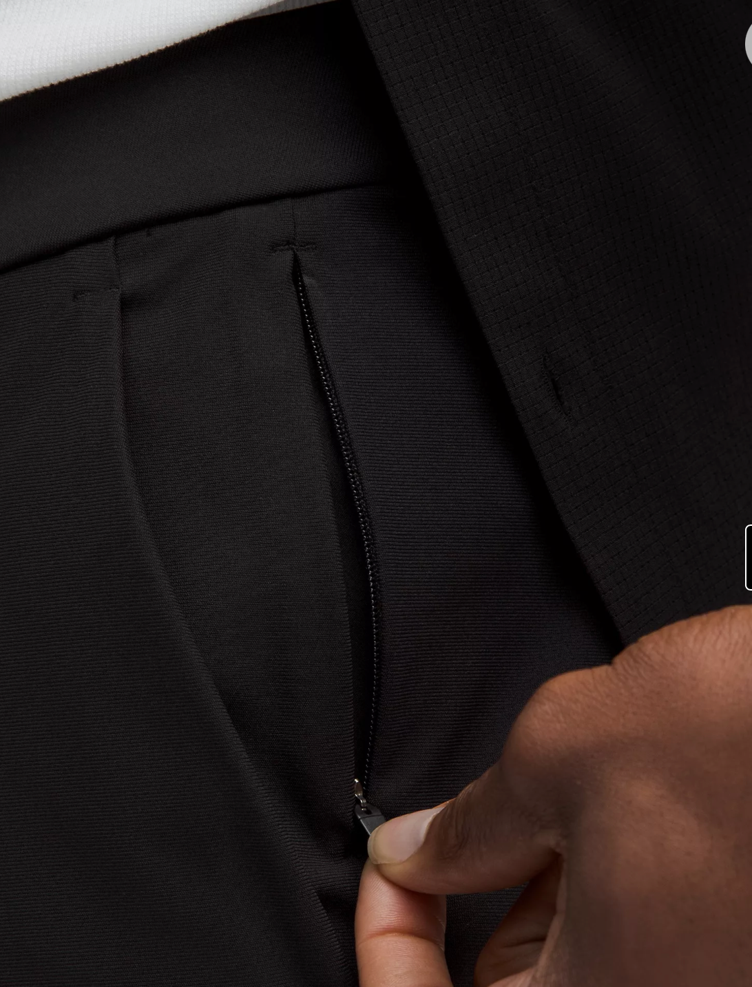 Four-way stretch fabric retains its shape and doesn't bag out.